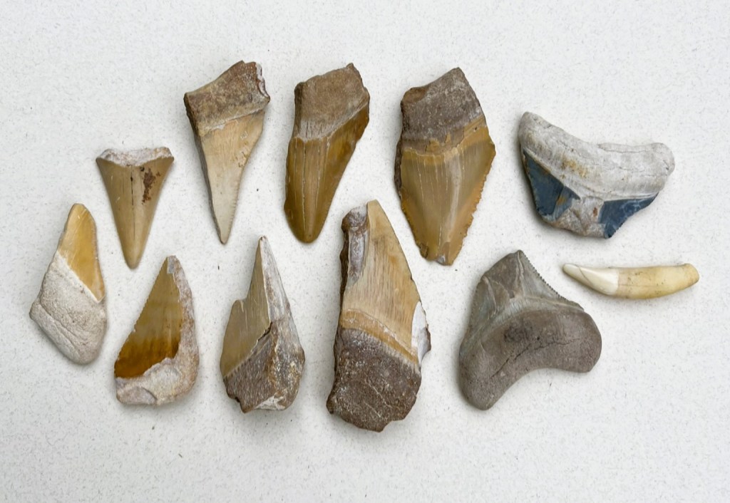 Fossil shark teeth | Cenozoic (apparently there’s an Otodus meglodon tooth in there somewhere)
