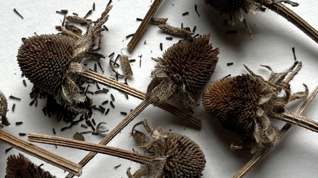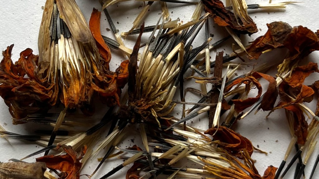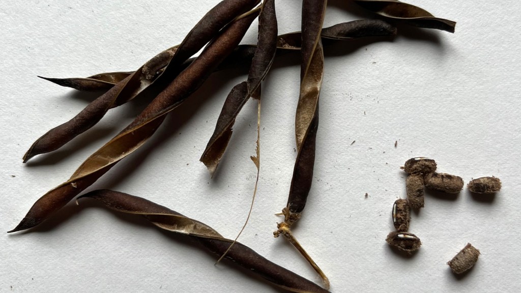 Left to right, from top: blackeyed susan, catalpa, orange cosmos, marigold, milkweed, partridge pea, trailing bean, wild carrot, wisteria. Click image for full size.